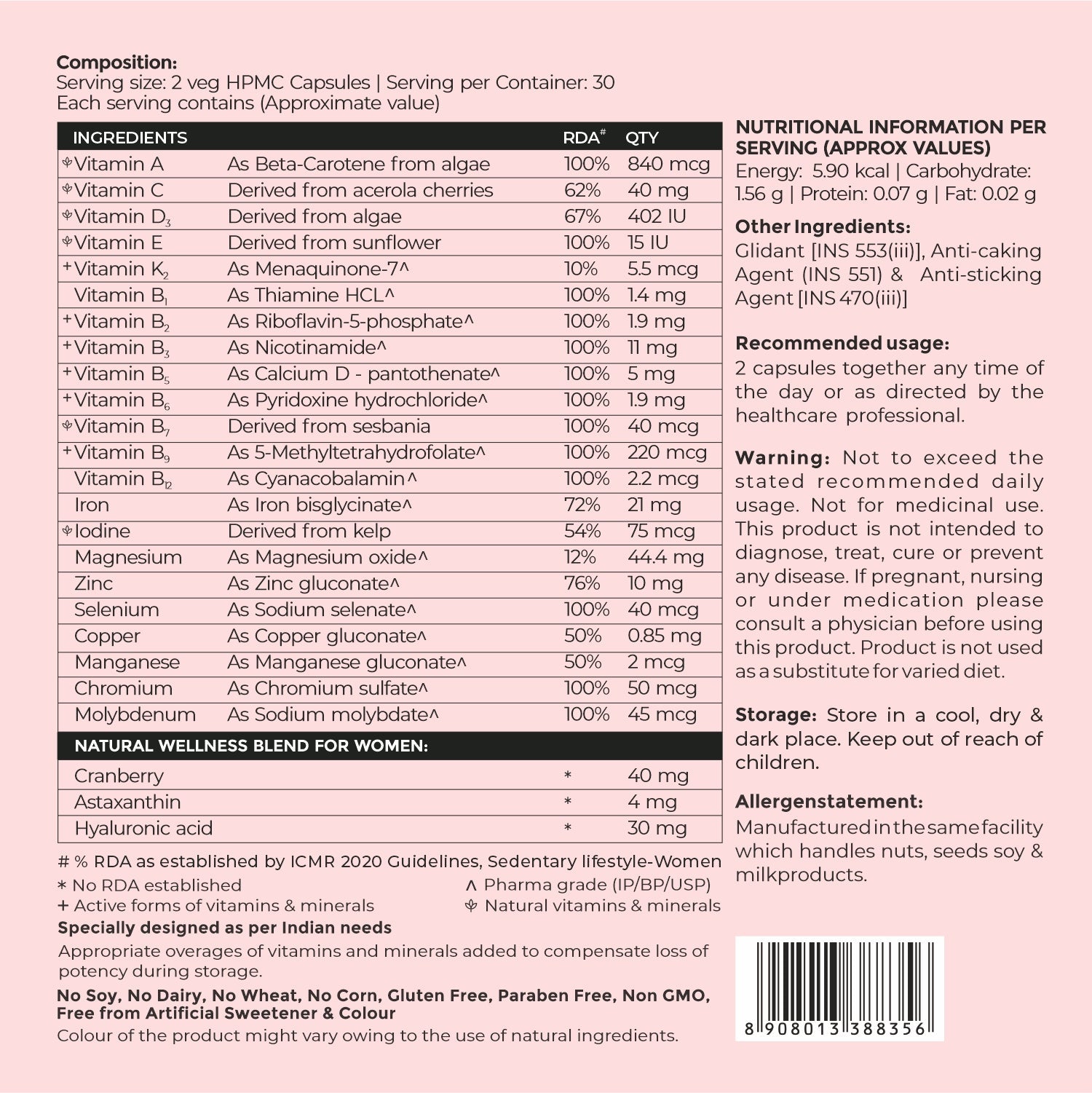 Carefully designed for urban Indians, the formula aligns with recommended dietary allowances, addressing common deficiencies and lifestyle factors. Packaged in non-leaching, eco-friendly glass bottles, it emphasizes sustainability and purity.